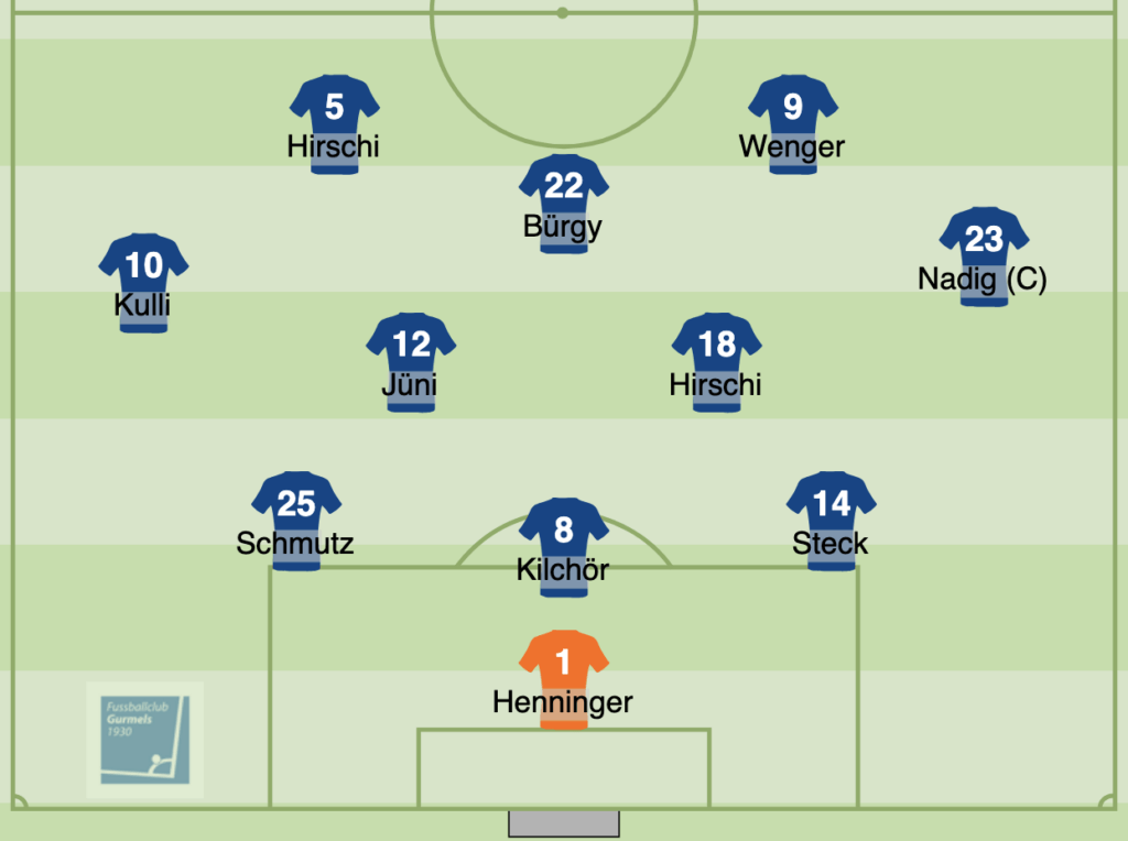 Der FC Gurmels gewinnt auswärts beim FC Courtepin-Misery-Courtion verdient mit 5:1. Über weite Strecken war Gurmels klar die bessere Mannschaft und hätte das Spiel schon in der ersten Halbzeit entscheiden müssen. Der FCG startete stark in die Partie und ging bereits in der 7. Minute durch Jan Bürgy mit 1:0 in Führung. Auch danach blieb Gurmels spielbestimmend und kam zu mehreren sehr guten Chancen. In der 31. Minute erhöhte Egon Hirschi auf 2:0. Mit etwas mehr Konsequenz vor dem Tor hätte der Vorsprung zur Pause aber deutlich höher sein müssen. Vier oder sogar fünf Tore wären absolut möglich gewesen.